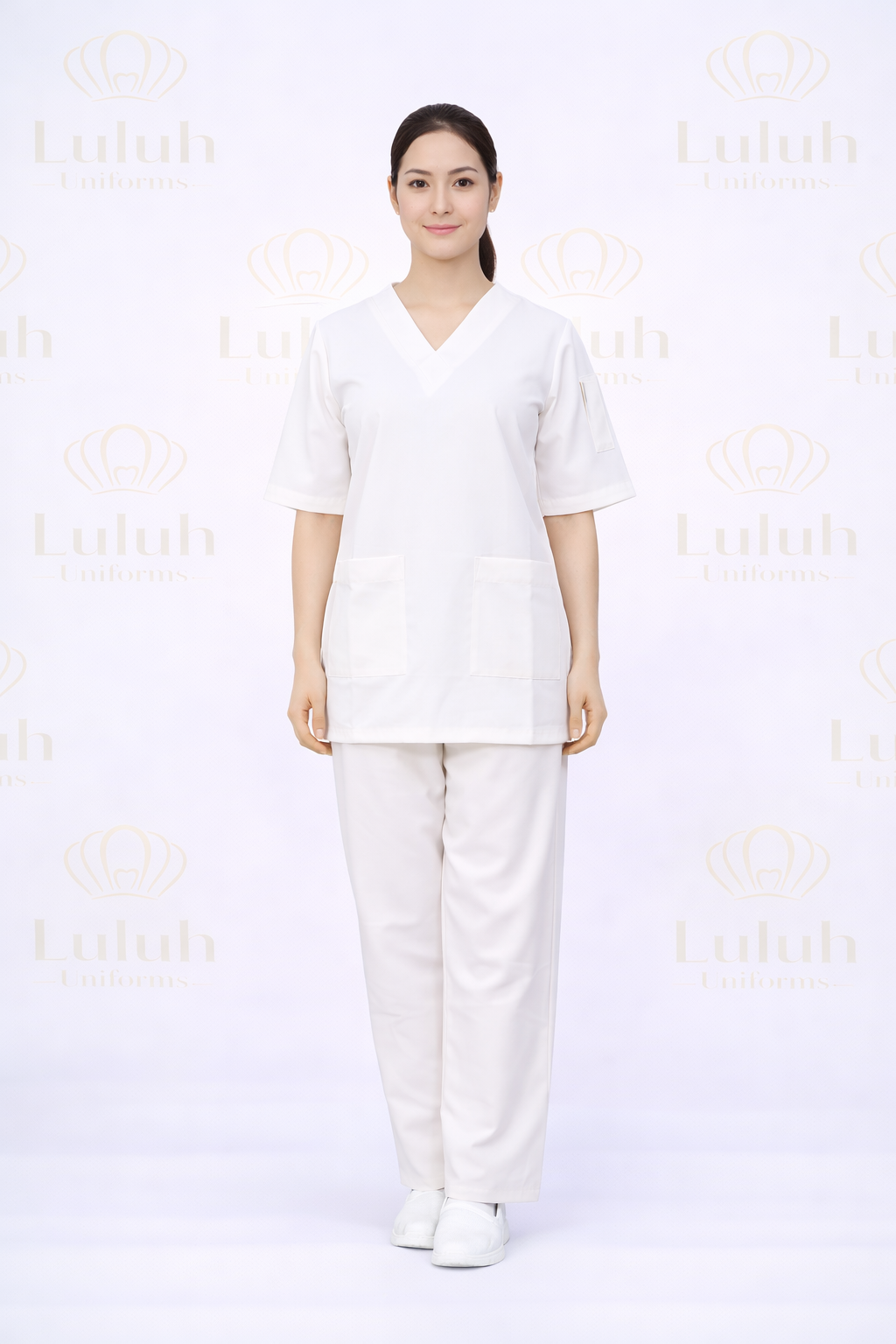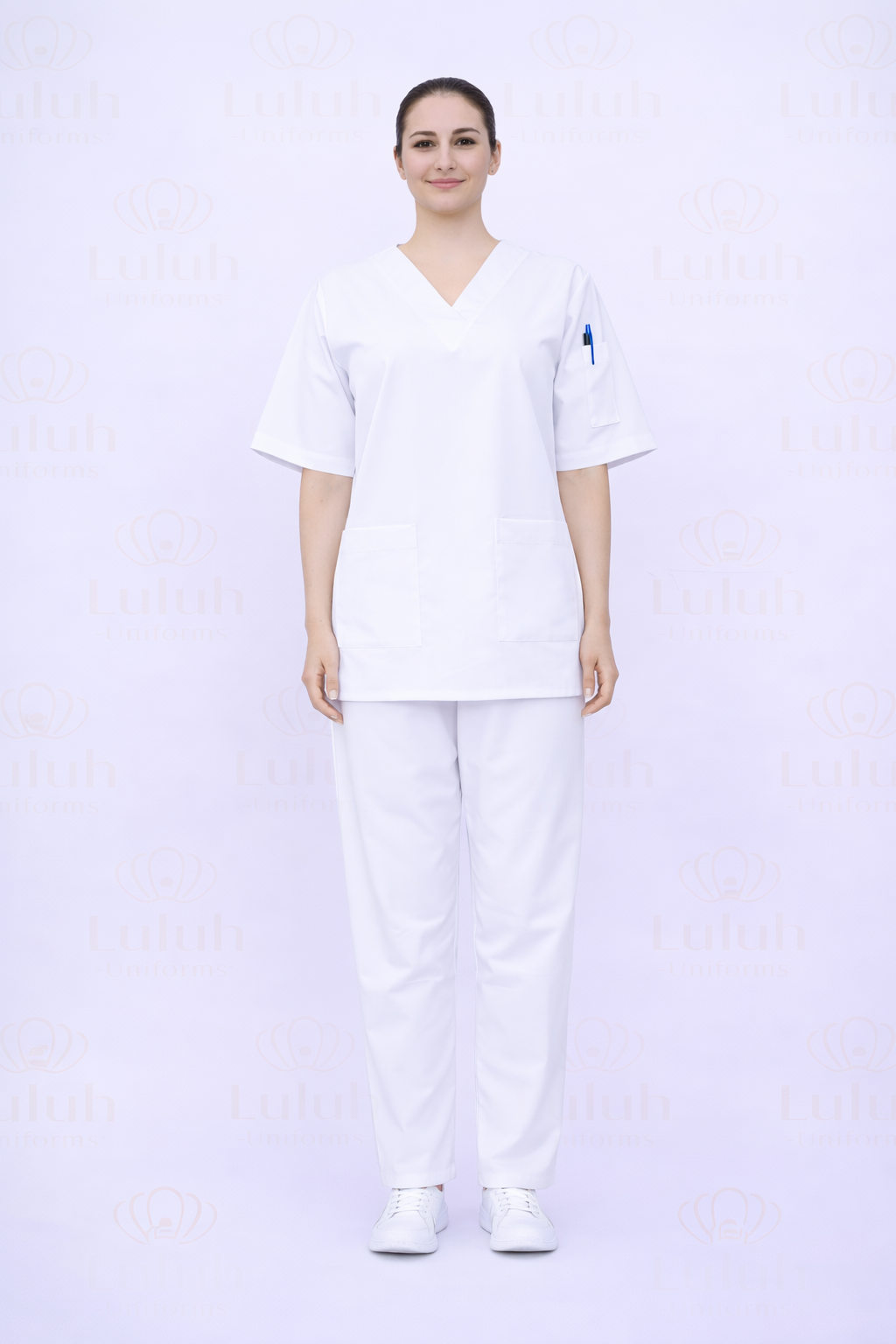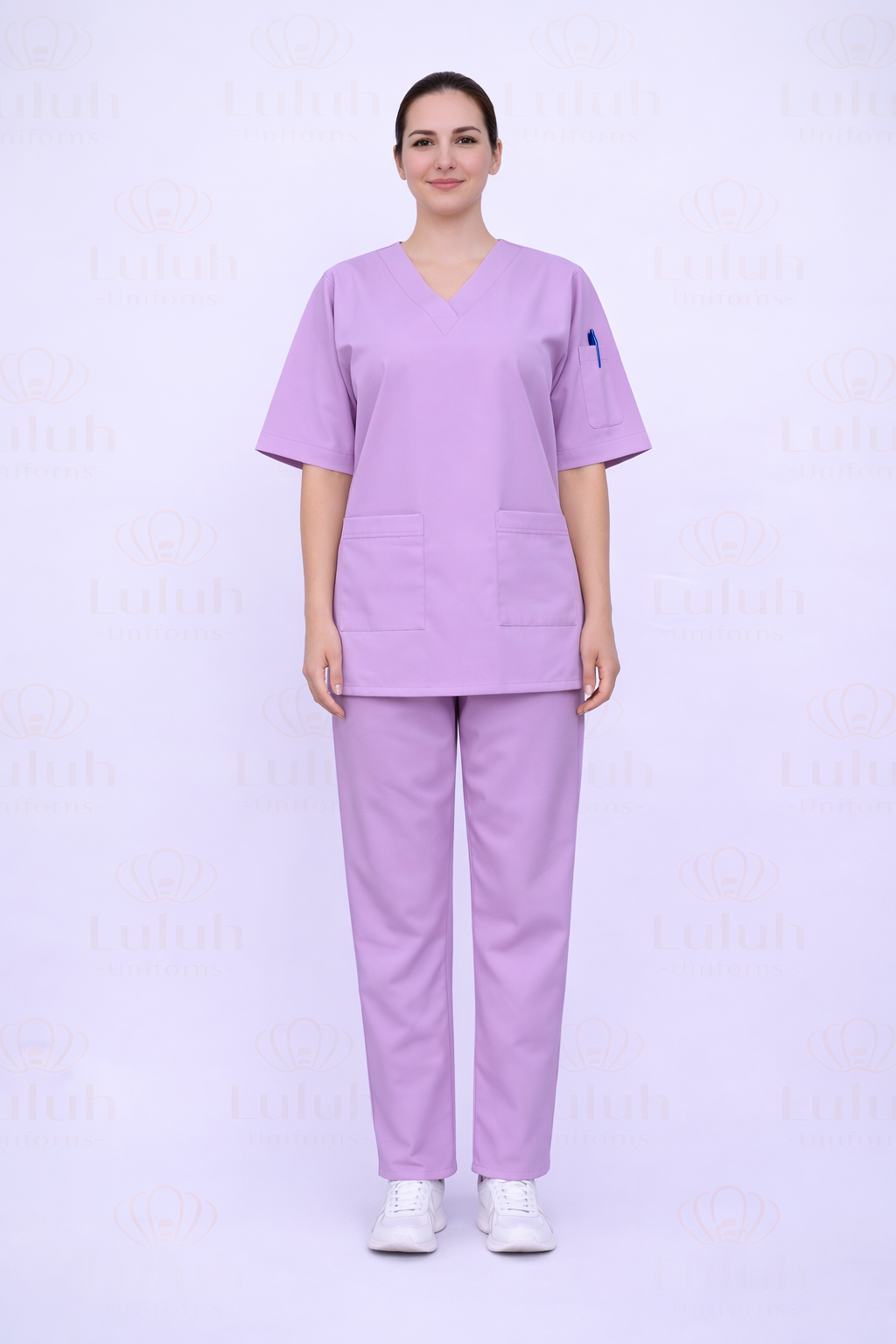 سكراب عملي بتصميم قصّة 7 (ياقة V) يوفر الراحة وسهولة الحركة أثناء الاستخدام اليومي، مع مظهر أنيق ومرتب يناسب مختلف بيئات العمل.