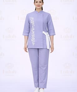 يونيفورم أنيق مخصص للعاملات في الضيافة والاستقبال، يجمع بين الفخامة والعملية ليعكس مظهرًا راقيًا واحترافيًا في بيئات العمل الرسمية.