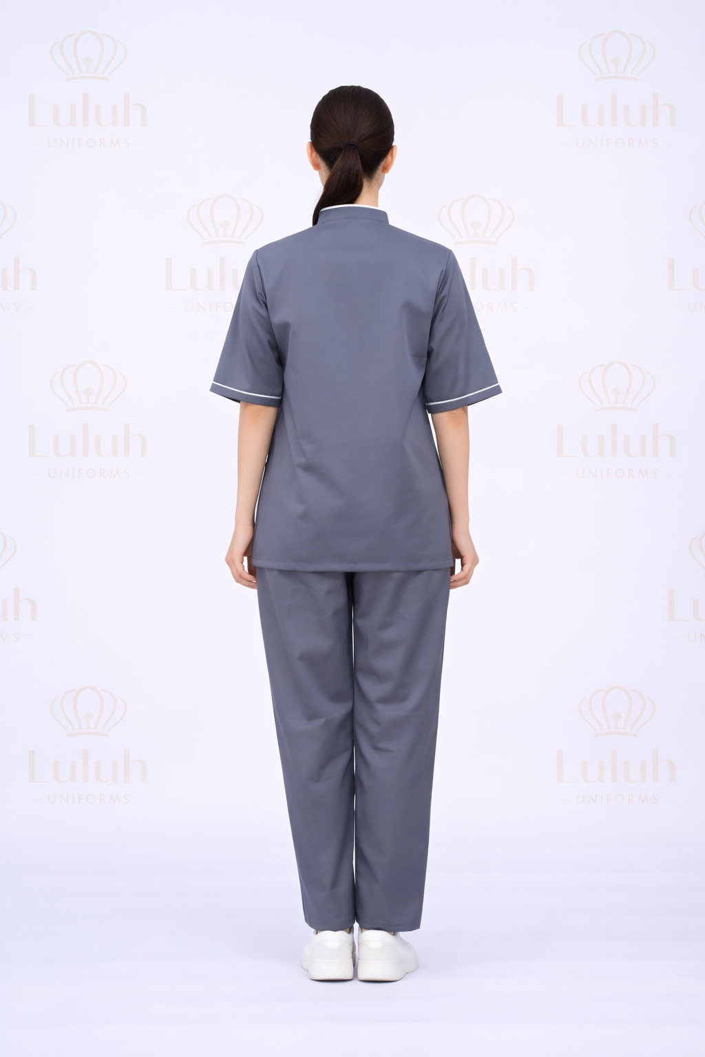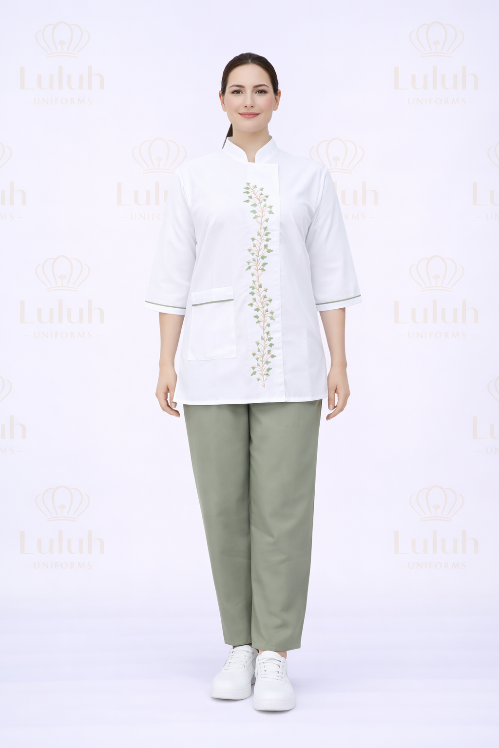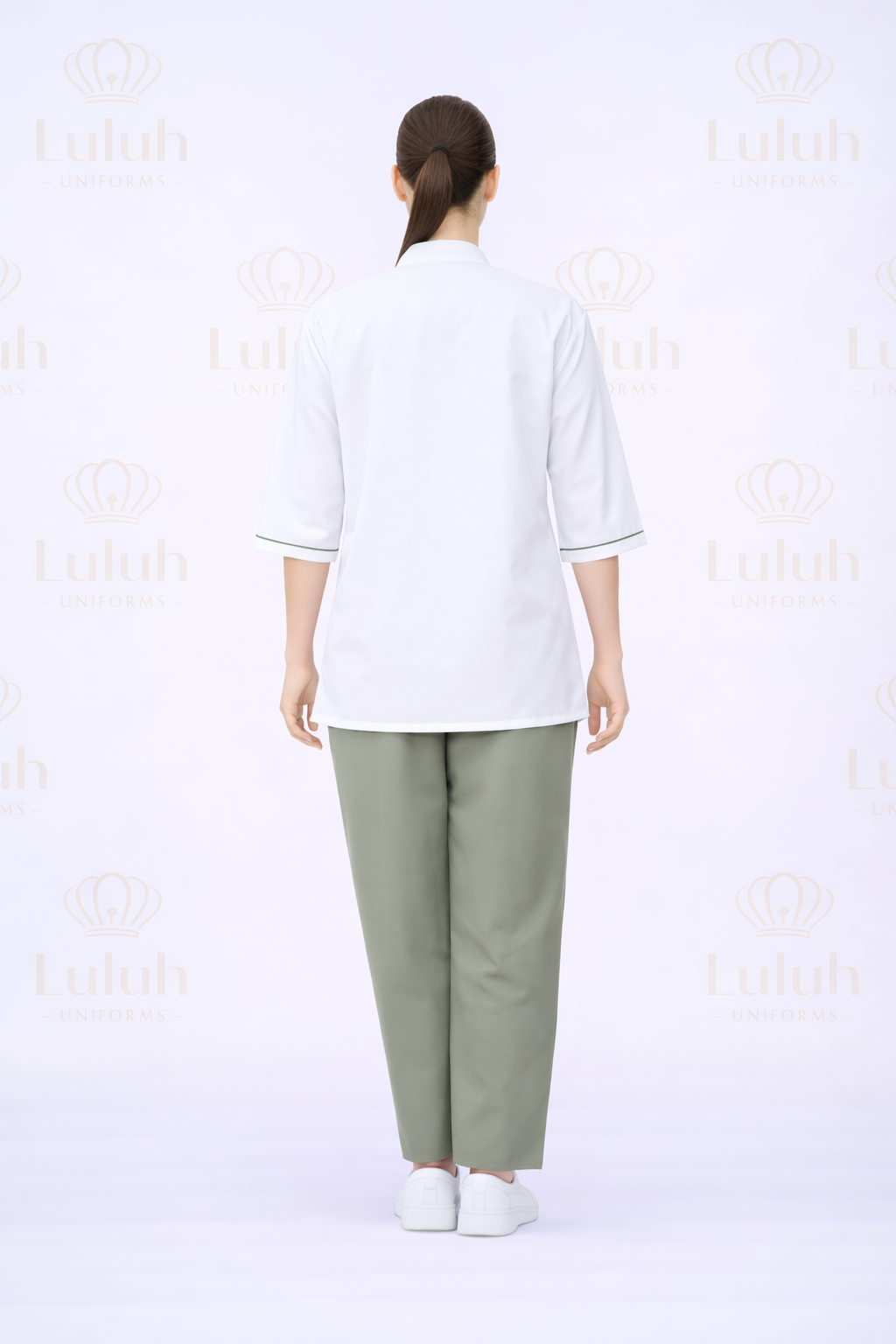 يونيفورم مخصص للعاملات في الضيافة والاستقبال بتصميم راقٍ يجمع بين الأناقة والعملية، ليمنح مظهرًا احترافيًا يعكس حسن التنظيم والرقي في بيئات العمل الرسمية.