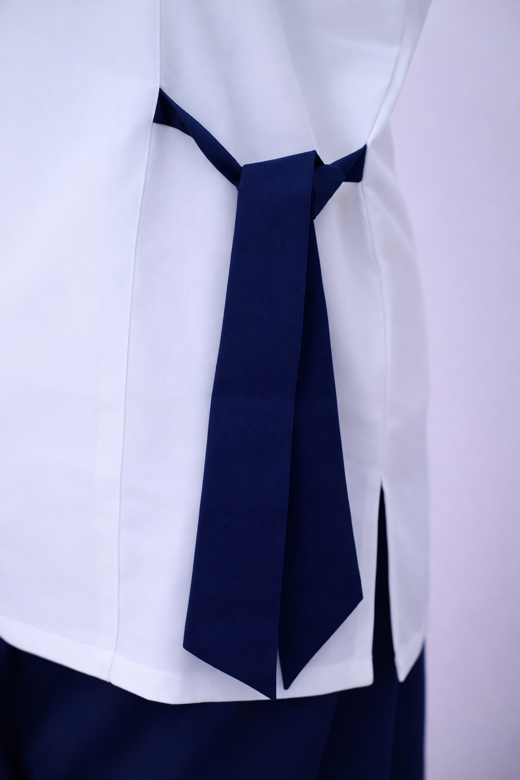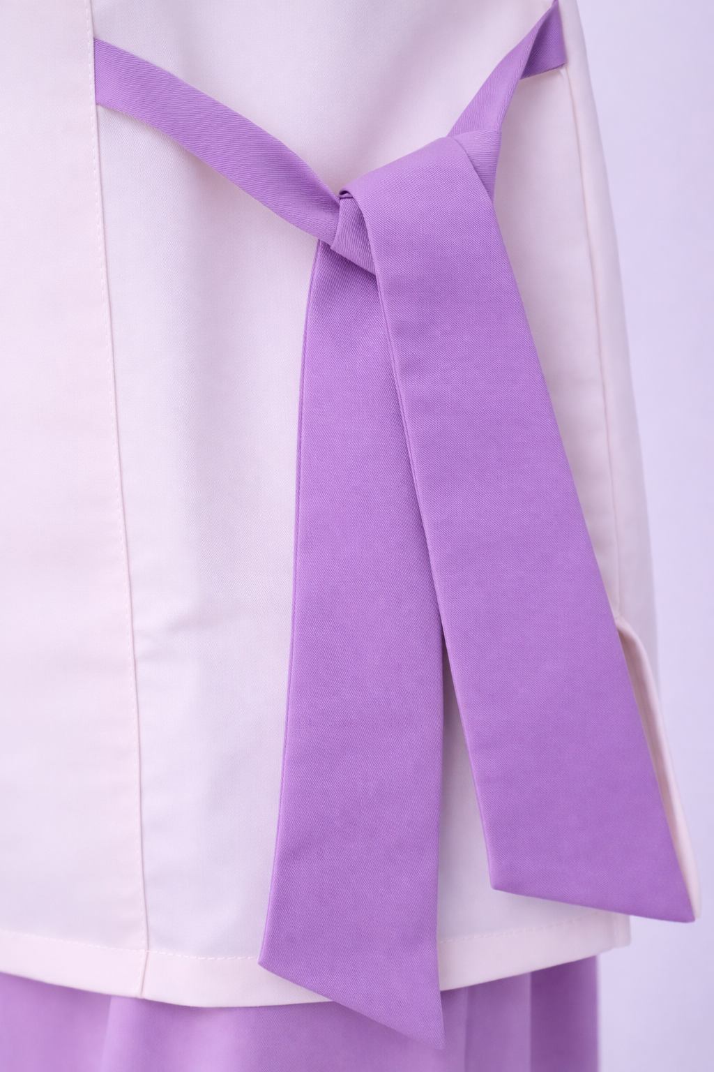 تفاصيل: أزرار وحزام جانبي بلون بنفسجي فاتح متناسق