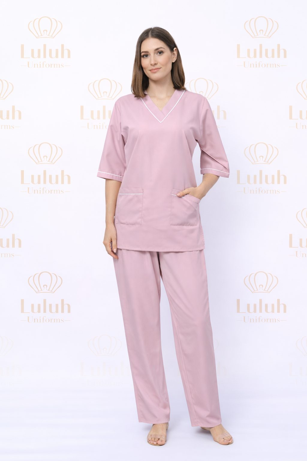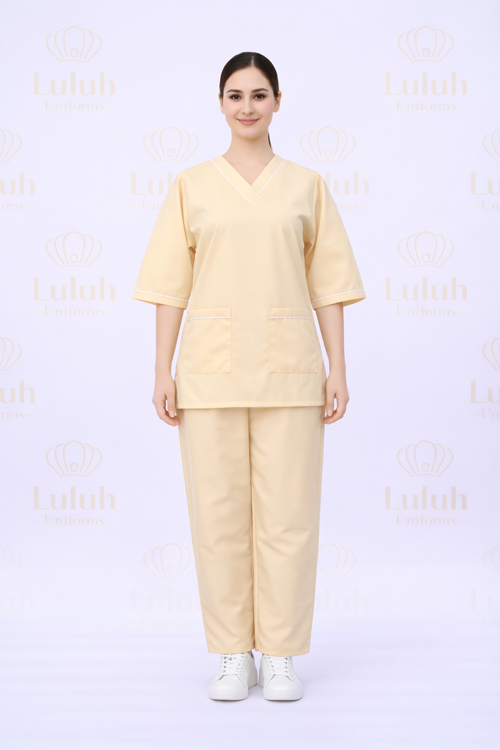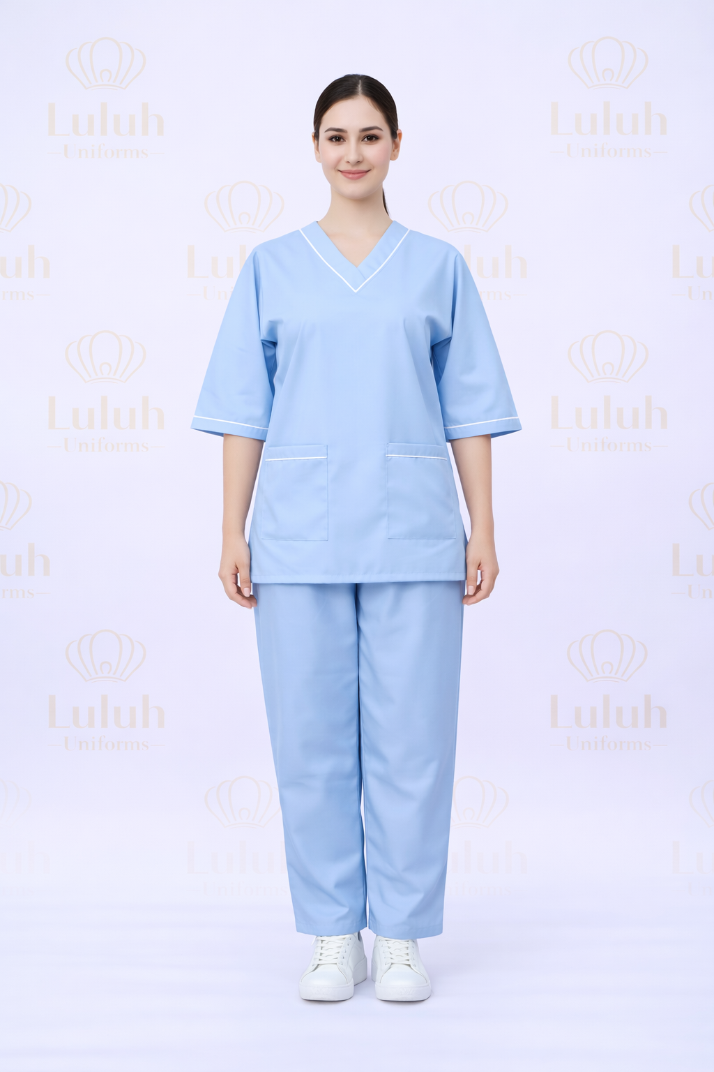 يتميز هذا الموديل بقصّة مريحة وانسيابية تمنح حرية حركة طوال اليوم، مع تصميم عملي يبرز الأناقة دون تكلّف مما يجعله خيارًا مثاليًا للبيئات الطبية والخدمية.